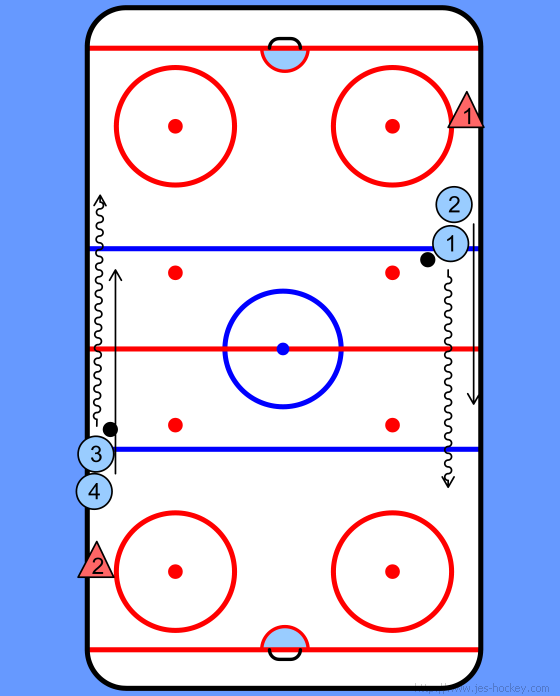 5. The two defenders then skate across ice to close gap and go back 2 on 1.