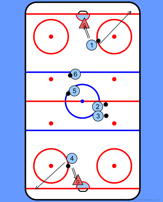 After 1 and 4 made their shots they go to a corner of rink and touch the boarding.