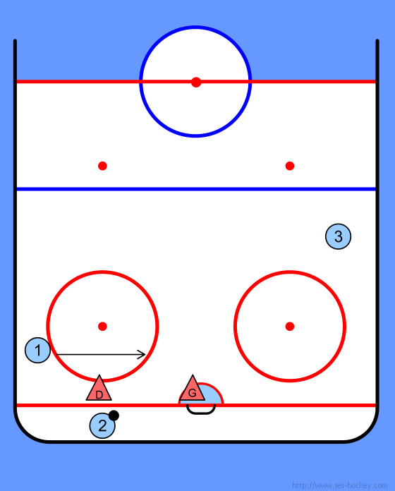P1 receives the pass (D man's now thinking "oh no") and is free to shoot.